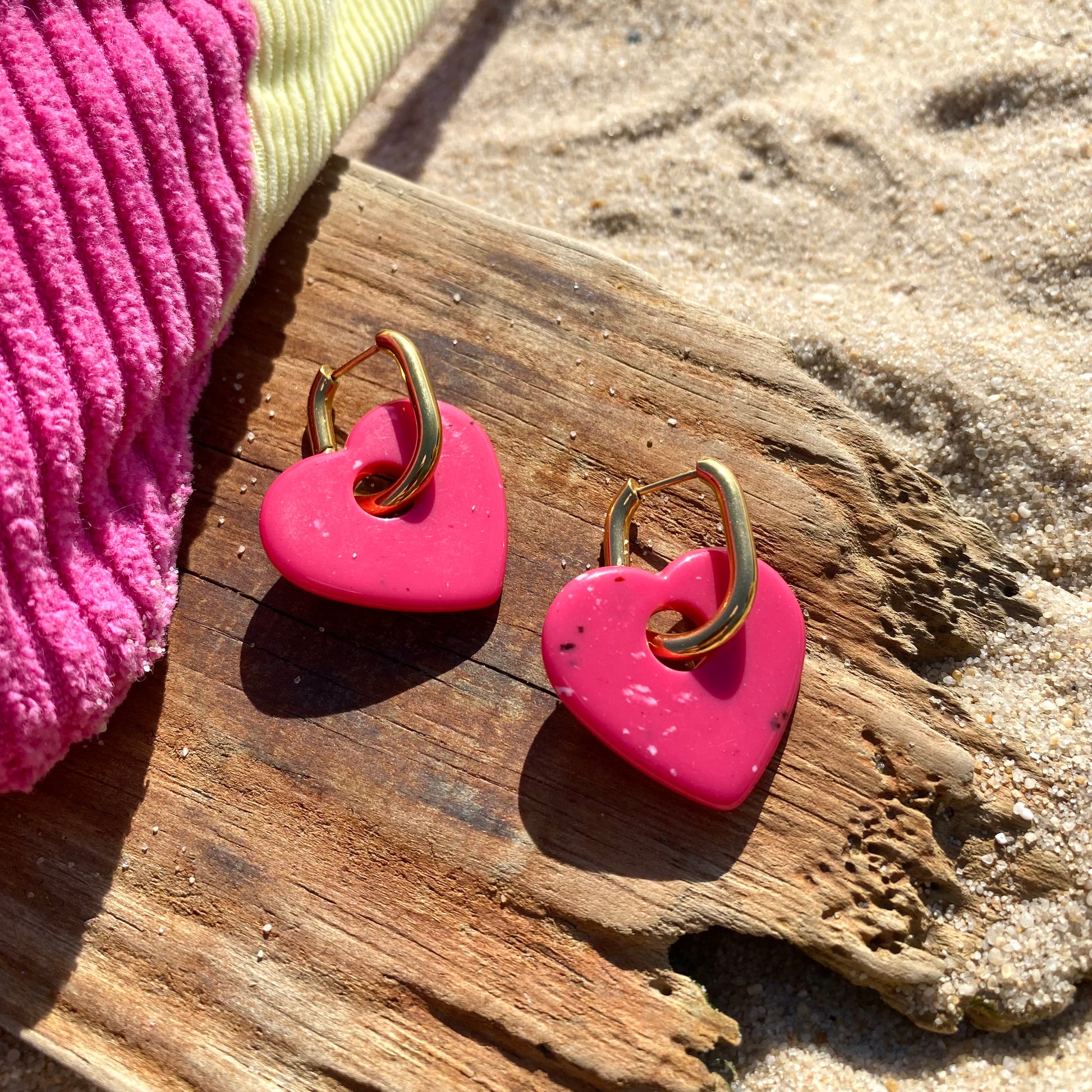 Boucles 2 en 1 en acier inoxydable et motif cœur en acétate.